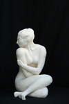 2009Deze vrouw is van witte klei opgebouwd met een grove structuur.